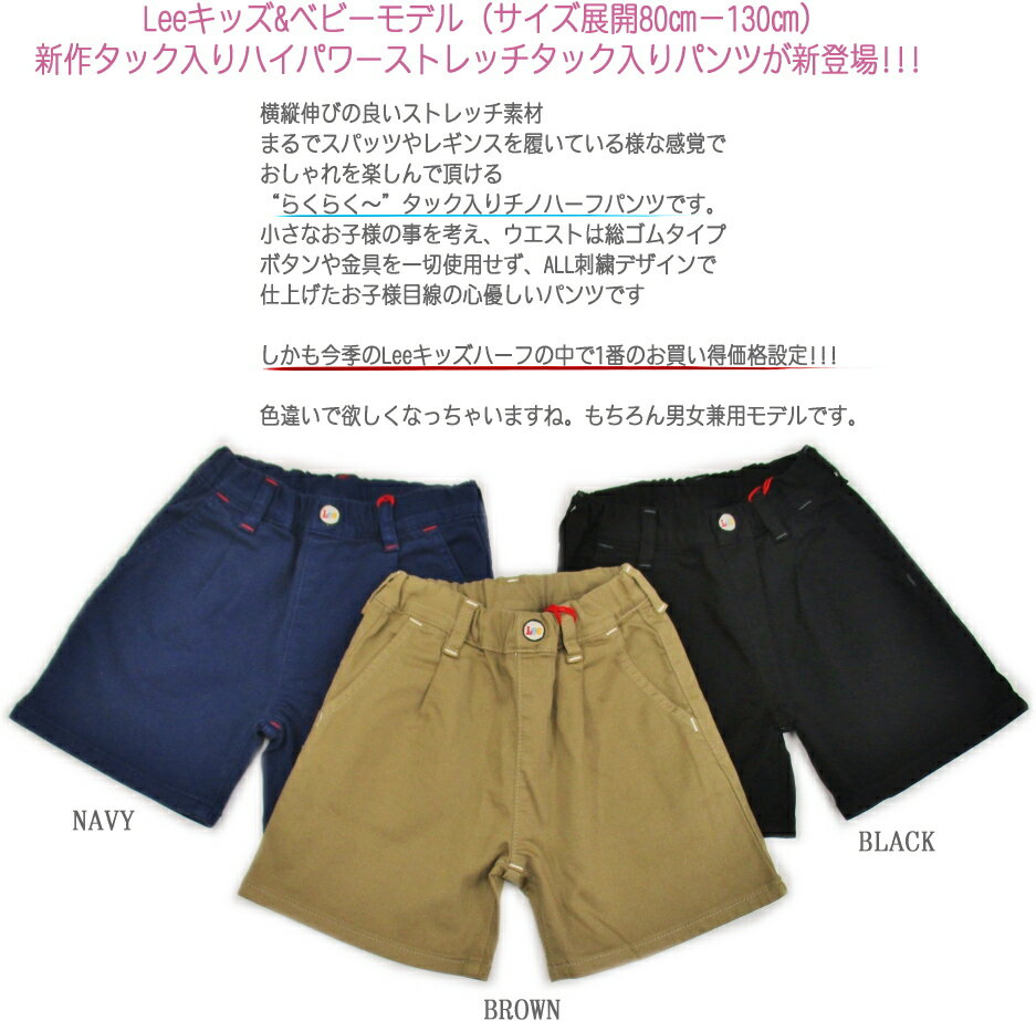 【SUMMER!!30%SALE】Leeキッズ 今季一番のお買い得価格 新作 ベーシック タック パンツ 3色展開 ベビー 80 90 100 110 120 130 cm ハーフ 短パン 夏パンツ 涼しい ストレッチ 総ゴム らくらくリーデニム NAVY ベージュ カーキー 黒 LK3337